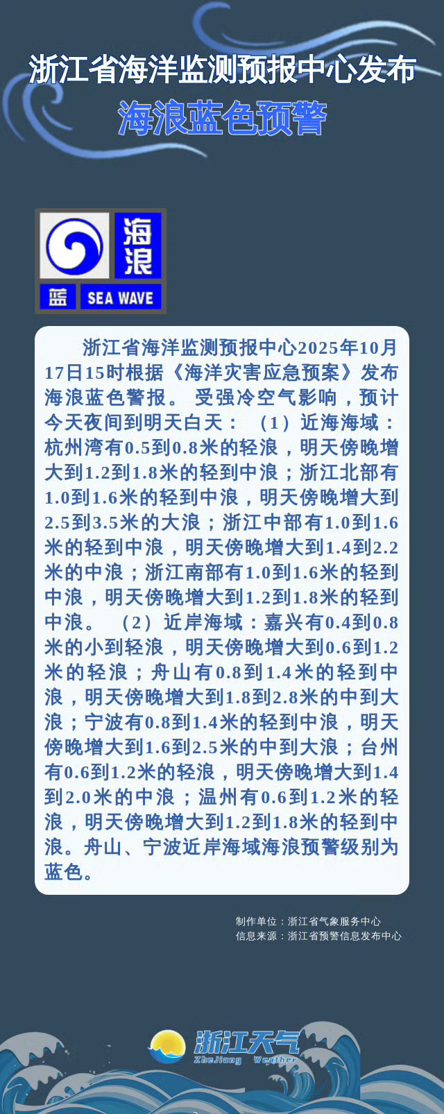 省气象台表示,因持续受到这股下半年来最强冷空气影响,浙江气温下降,海上有持续性大风;20日前大部地区多阴雨,其中18日有较明显雷阵雨天气,局部有短时暴雨。